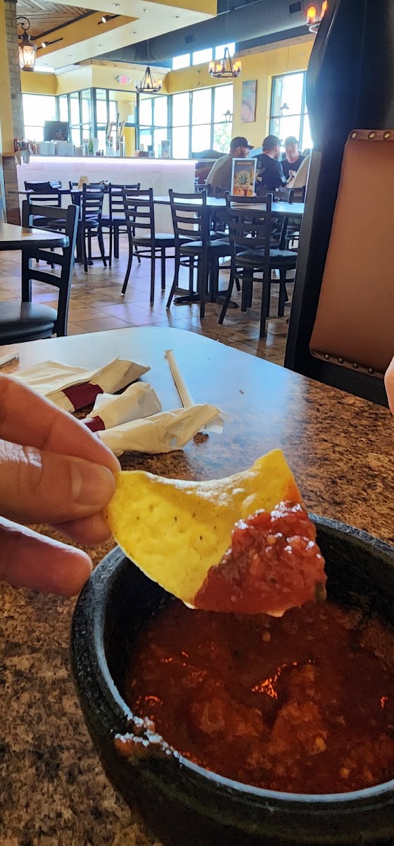 Wow!! Finally found our Mexican spot in the area. Moved here 2 yrs ago from the West Coast and are very picky about good Mexican. Chips are crispy and the salsa is excellent, service friendly and quick. The enchilada sauce is homemade and the margaritas are great. If you haven’t tried this place please do and send your friends. Ask for the chile verde not on the menu but they can make it. My 16 yr old son loves it too!