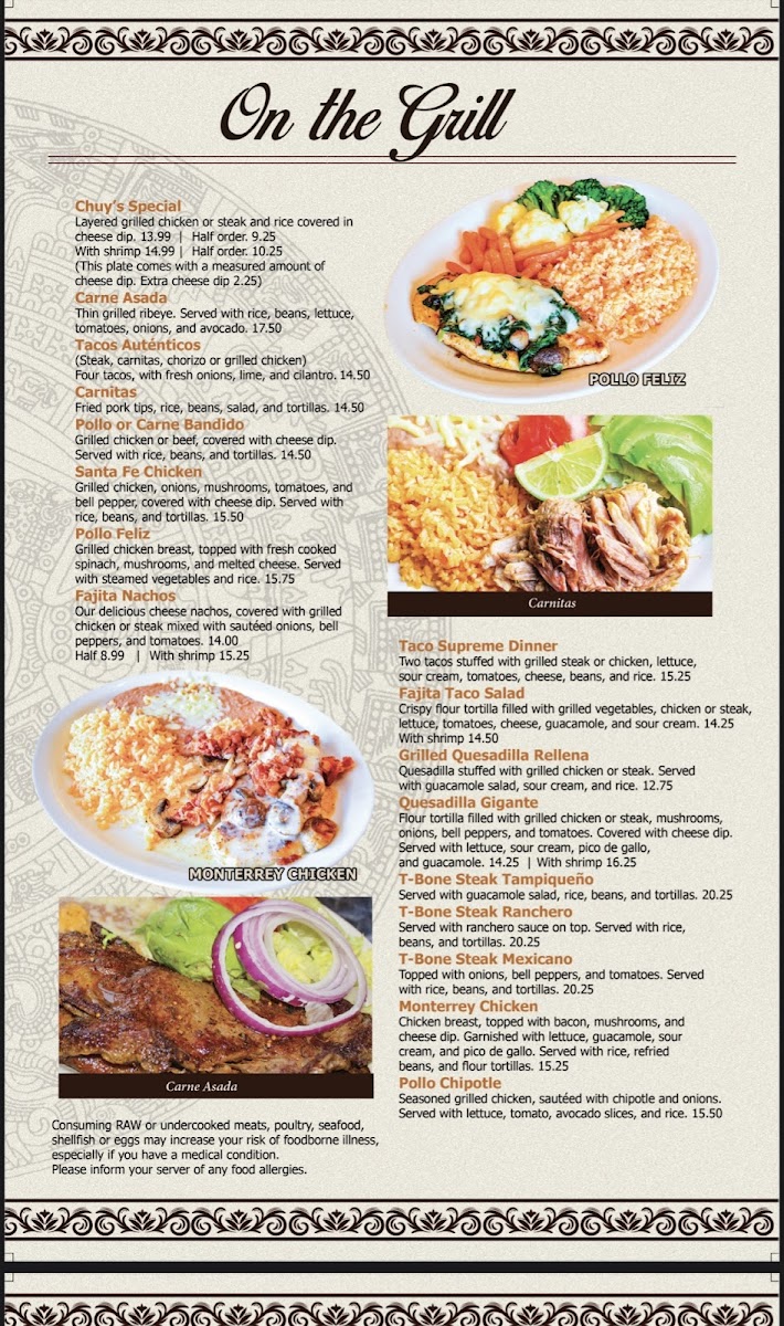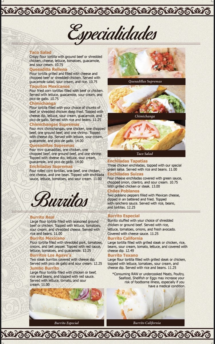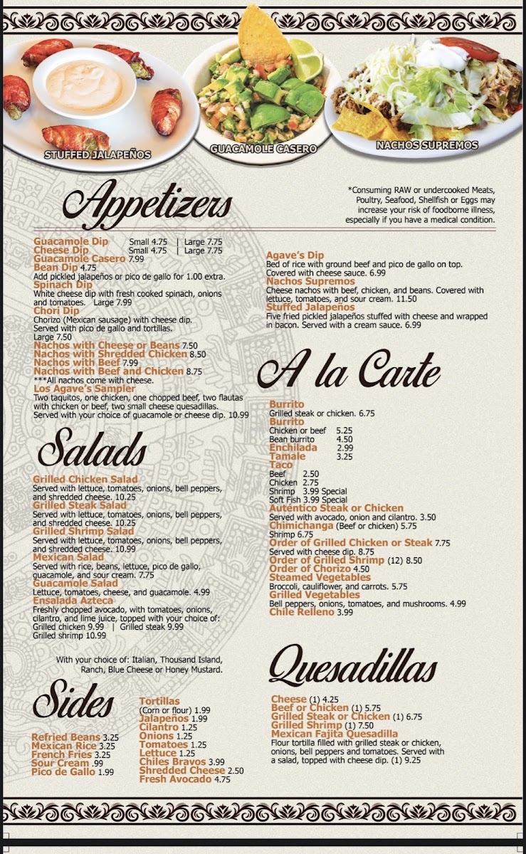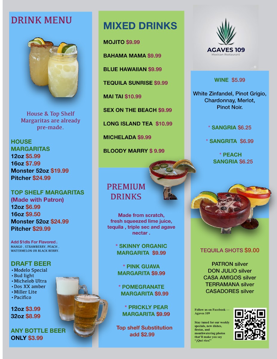 Agave’s 109 offers a menu that blends traditional Mexican flavors with a straightforward, approachable style. The offerings range from satisfying grilled dishes like Chuy’s Special with shrimp and tender Carne Asada, to classic combination plates featuring tacos, enchiladas, and chile con queso. These dishes are well-suited for casual lunches, relaxed dinners, or gatherings where the focus is on enjoying familiar, comforting meals in a lively but welcoming setting.